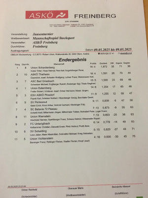 Beim Jausenturnier in Freinberg am 09.05.2025 zeigten unsere Schützen Hochhold Hannes, Hötzeneder Rupert, Schano Helmut und Mannschaftsführer Spießberger Franz vollen Einsatz und sicherten sich den 8. Platz.